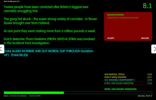 AirScribe is newsroom management software. File copy ahead for broadcast & the web, take external feeds via NewsML. Compile bulletins and read from the screen.